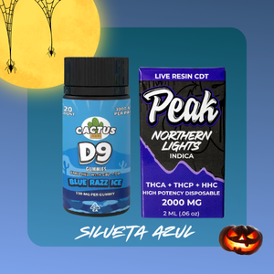 Gomitas de alta potencia cactus y un destilado Peak 2G, este combo esta pensando para las fiestas en casa con amigos acompañadas de pizza, no faltarán las risas y el apetito ¡Por Halloweed a un precio de no creer!